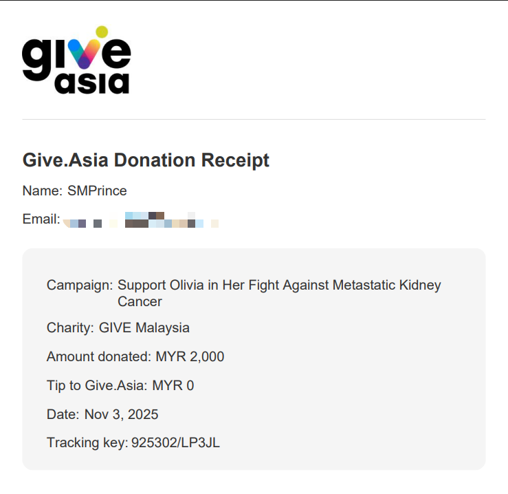 02/11/2025 Finnlouis's Fight for Life! SGD 1,000.00 more